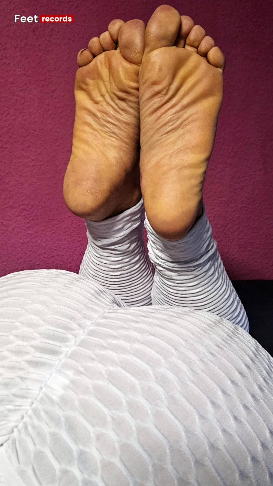 Leggings and bold colors appear in many Amy Luxe sets for a reason. They frame the legs and backside, create contrast against the skin and guide the eye downward toward the feet. The feet remain the focal point, but they are not isolated. Clothing and color choices support the body’s lines and enhance the visual impact of the #soles. Here as well, the styling follows a clear and intentional approach.