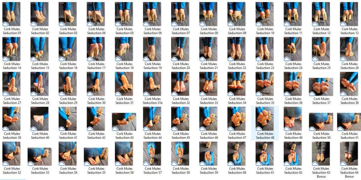 60+ High-Resolution Photos, From seductive close-ups to stunning posing shots, explore every stunning detail of Amy Luxe’s cork heel session. This Set also comes with an Exclusive Bonus Video. A special dangling video where Amy teases with her effortless foot play, showing off the art of shoe dangling in her iconic cork mules.